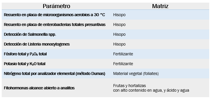 En el Área de Cromatografía se ha logrado extender su alcance abierto al análisis de residuos de fitohormonas, herbicidas ácidos y otros plaguicidas en las familias de frutas y hortalizas con alto contenido en agua, y en ácido y agua.